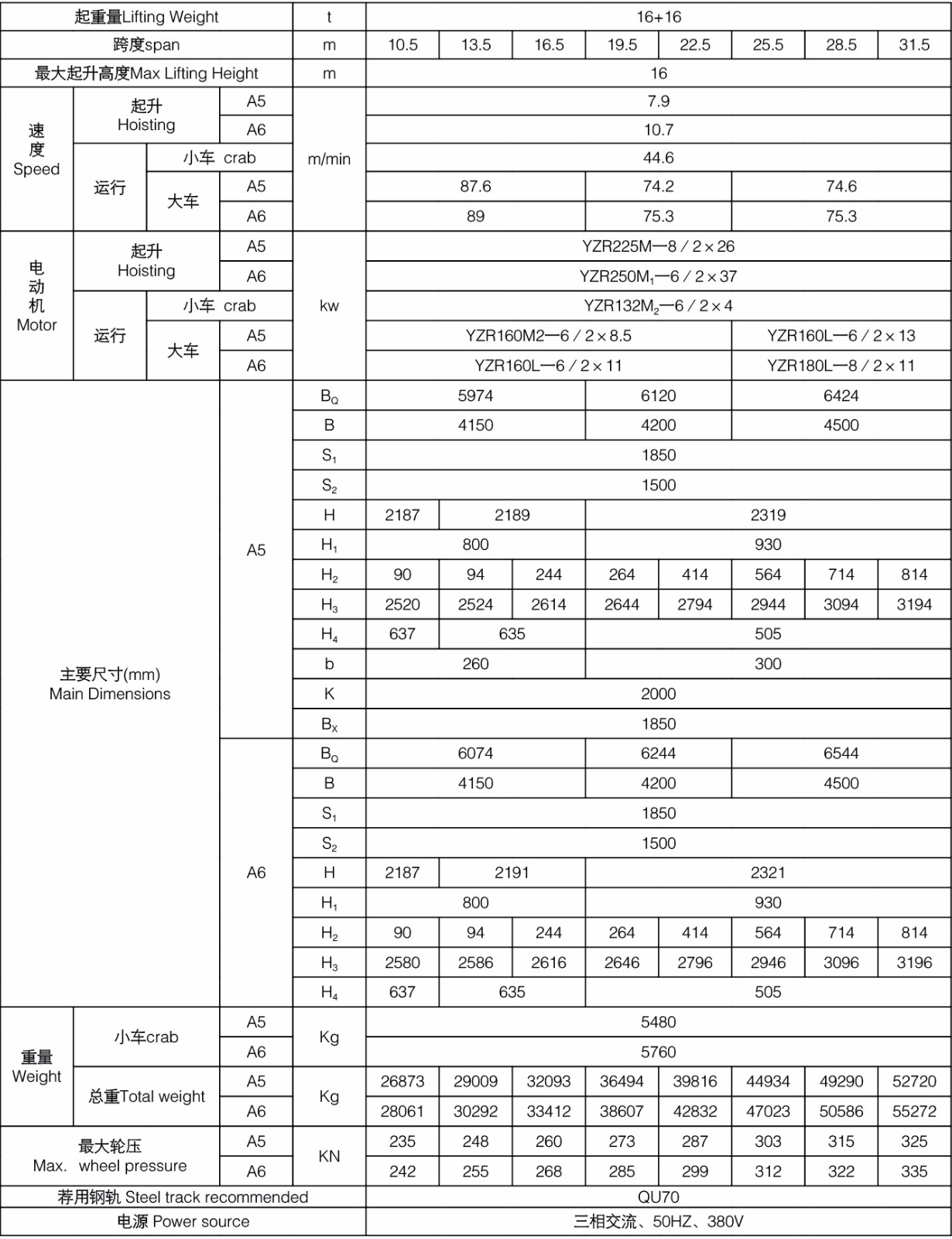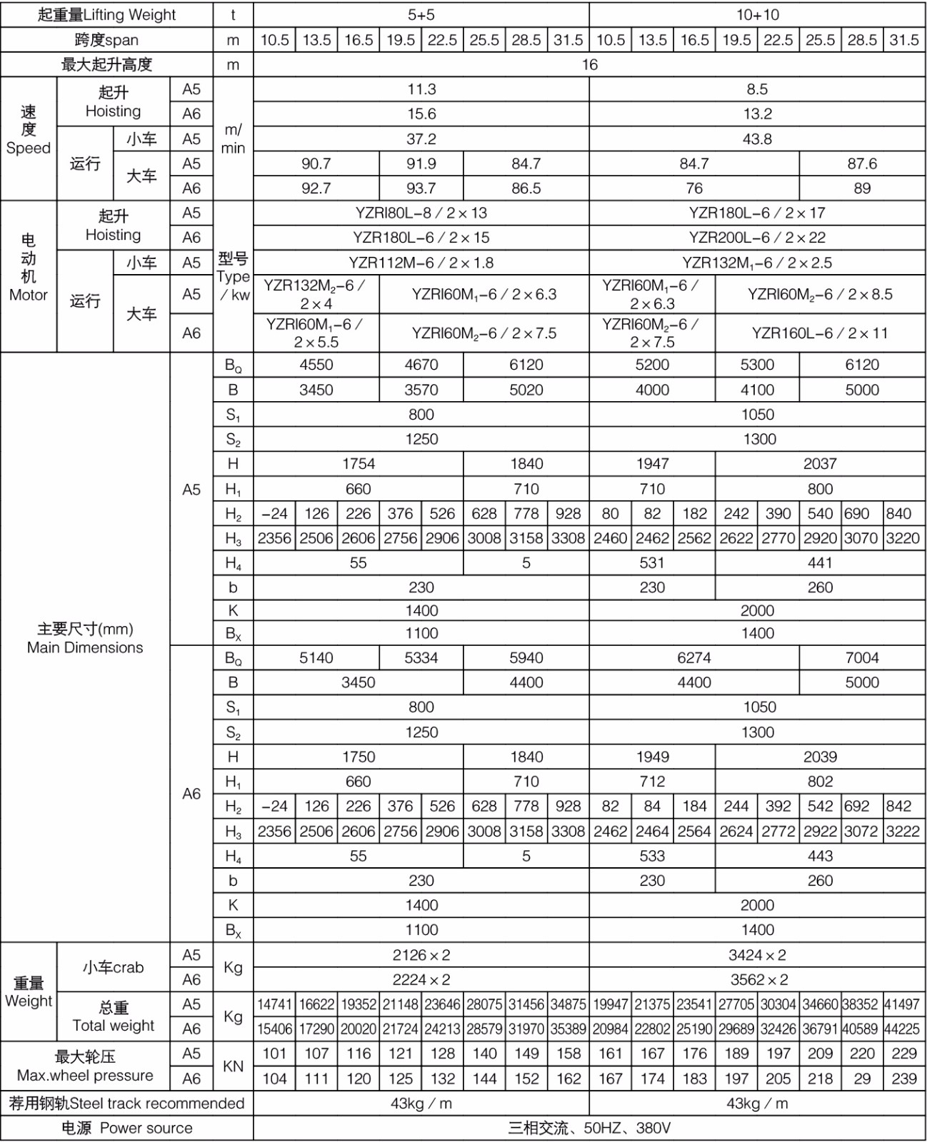 本起重机有两台小车,两小车可以同时使用,也可以单独使用,适用于厂矿企业的车间或露天仓库吊运长件材料(木材,纸筒,管封,棒材)。