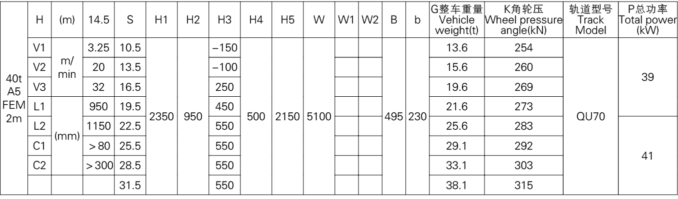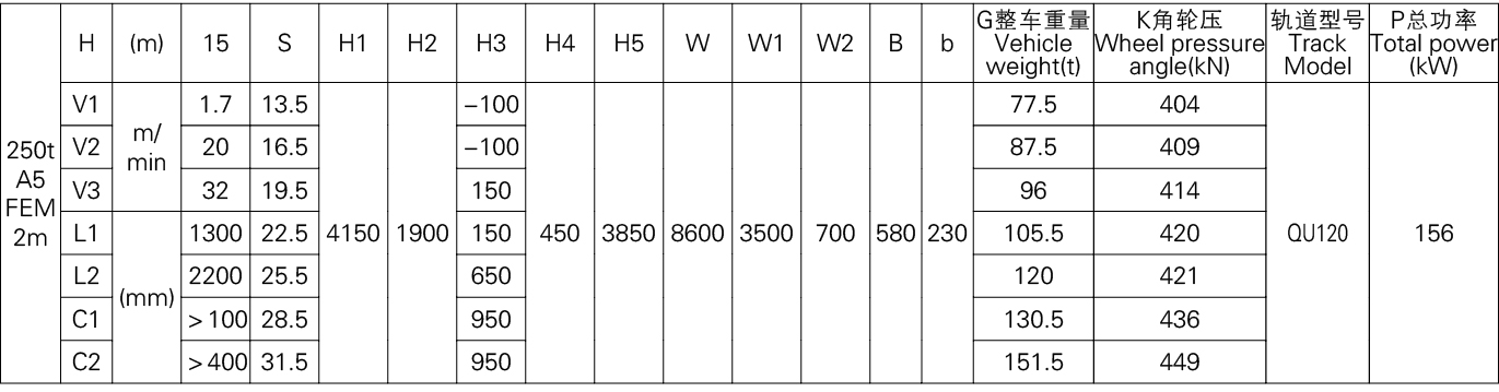 3、表中的尺寸,重量,轮压供客户订货时参考,如果客户的需要条件发生变化,如工作级别,速度,起升高度有变化时,相应的参数,尺寸,重量,轮压等都会发生变化,实际的参数,质量,轮压以合同的要求为准。